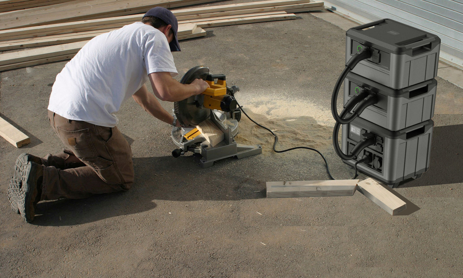 Durch das stapelbare Design können Sie problemlos in wenigen Minuten zusätzliche Akkus hinzufügen, sodass Sie jederzeit mehr Leistung haben.