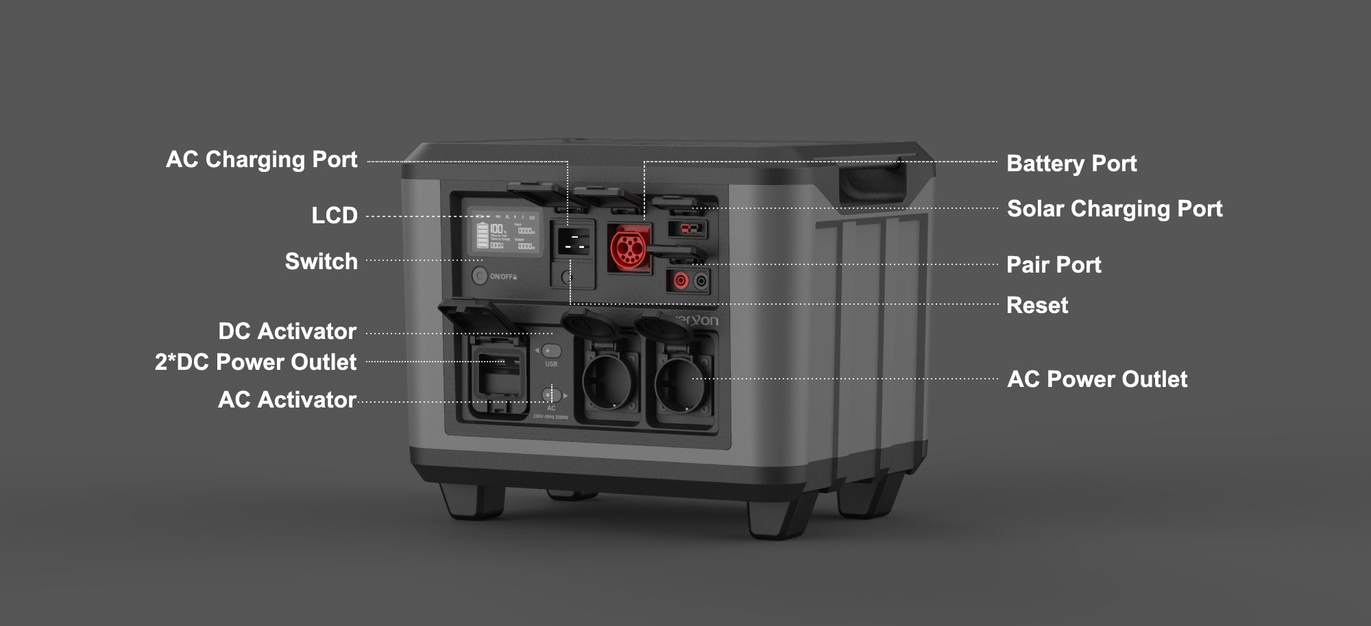 Der Solareingang unterstützt ein 12-60-V-Solarladegerät mit einem PA45-Anschluss. Wir empfehlen die Verwendung eines PowerXon-Solarmoduls (800 W), um die beste Kompatibilität zu erzielen.